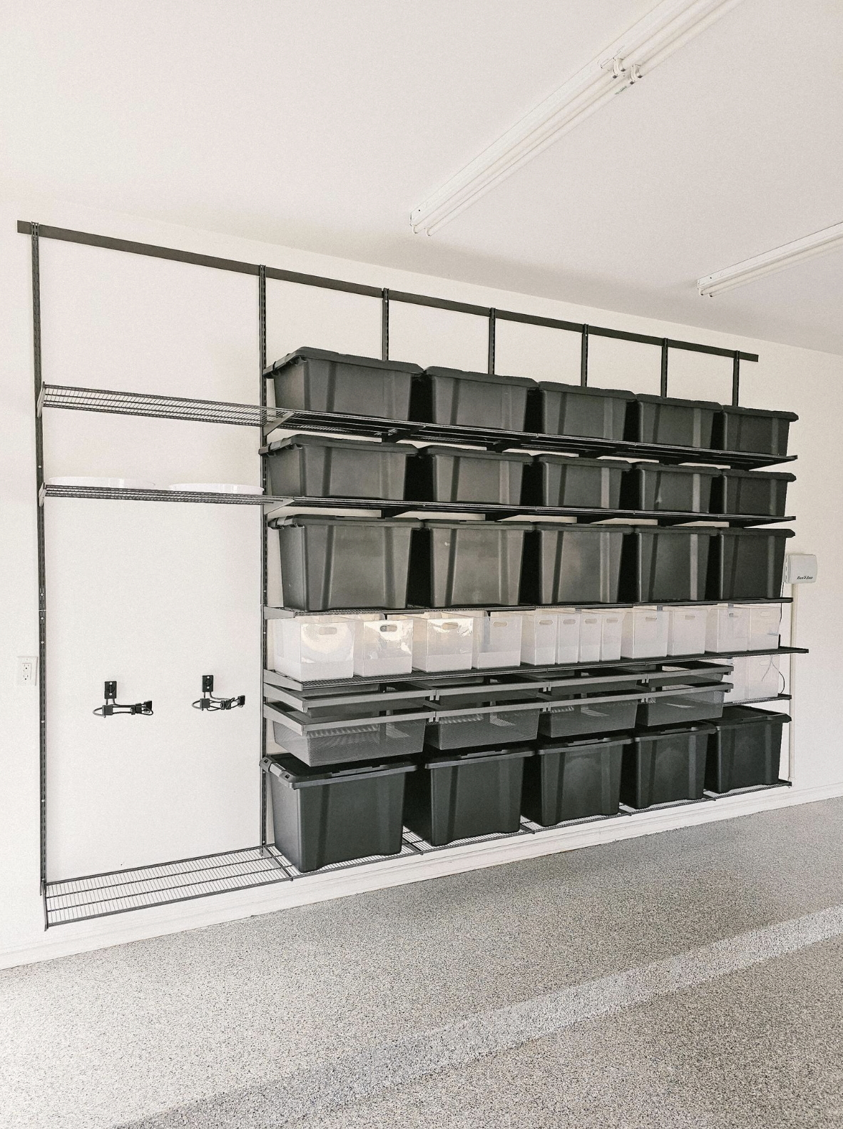 We love The Container Store’s Elfa garage systems! With customizable shelves, bins, and hooks, Elfa helps you organize your space in a stylish, functional way. It’s easy to adjust as your needs change, making it a perfect long-term solution for a clutter-free garage!